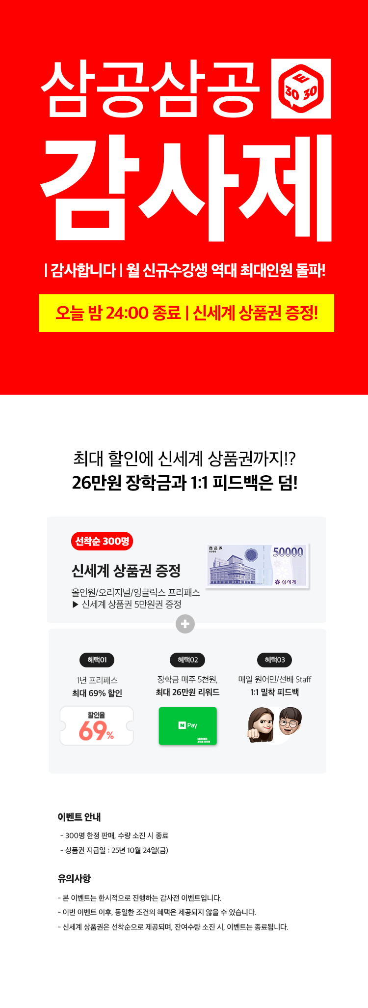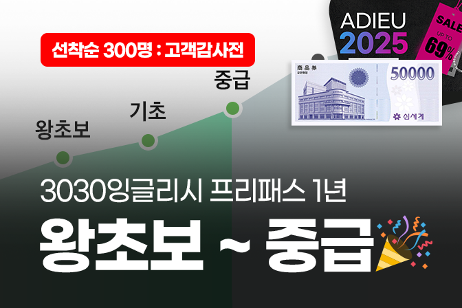 - 미션 진행 리워드 지급 조건은 [3030잉글리시 VIP] 밴드 운영사항을 참고해 주세요.