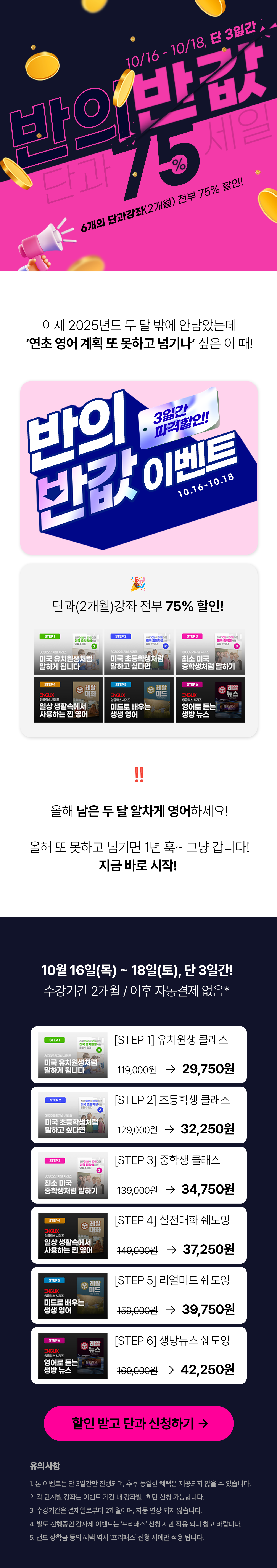 [오늘 밤 24:00 종료] 반의반값 이벤트 | 6개 단과 강좌 (2개월) 전부 75% 할인, 이후 자동결제 없음!