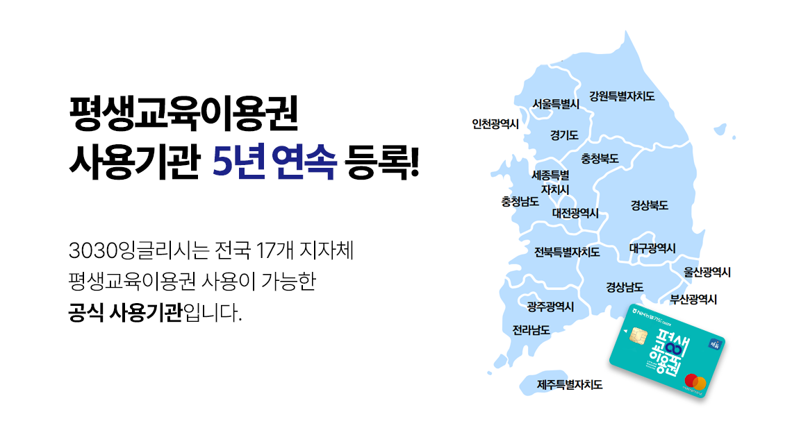 안녕하세요, 평생교육이용권 사용기관 3030잉글리시 입니다.